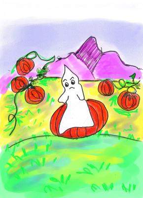 As soon as the Fire Council ended, Ghilly sat down on a pumpkin to think. How could he stop the evil ghosts, goblins, and witches from terrifying the little ones? He thought and thought, but did not know what to do.